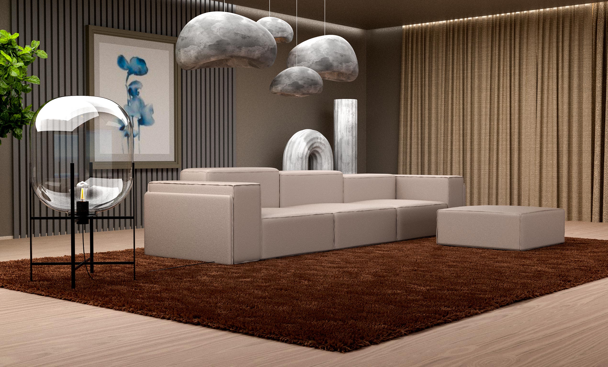Tratti forti e decisi sottolineati dalle eleganti cuciture che definiscono in maniera spiccata il suo raffinato design perfetto anche per essere posizionato al centro della stanza. Divano componibile dalla forte personalità definita da volumi importanti e dalle imbottiture comode realizzate in poliuretano espanso con densità differenziate e struttura in legno.