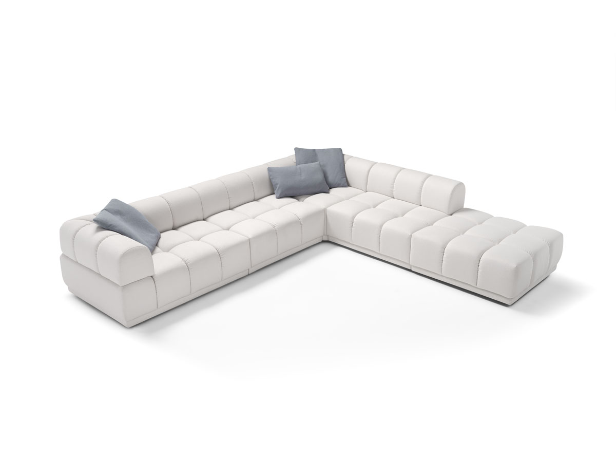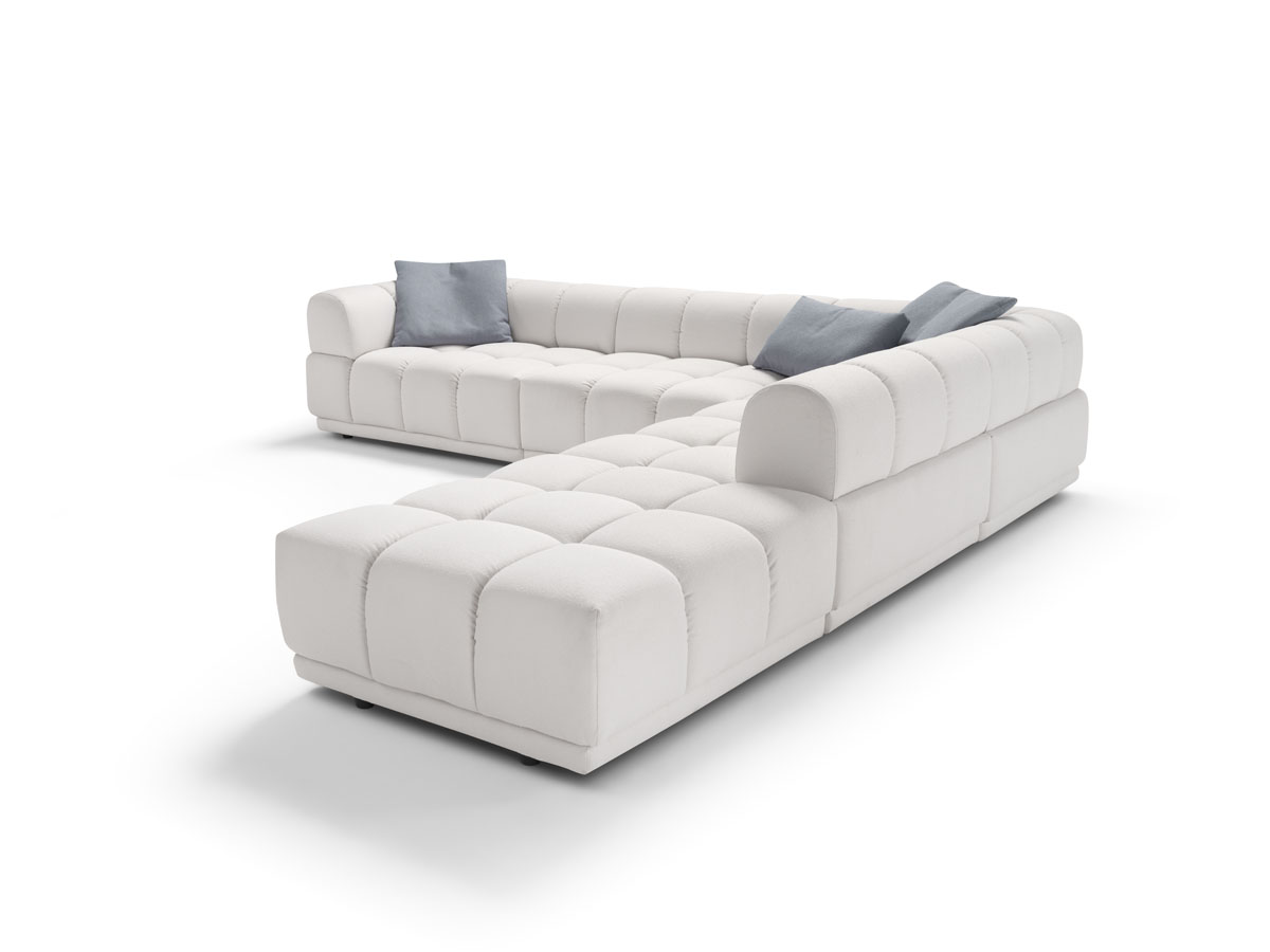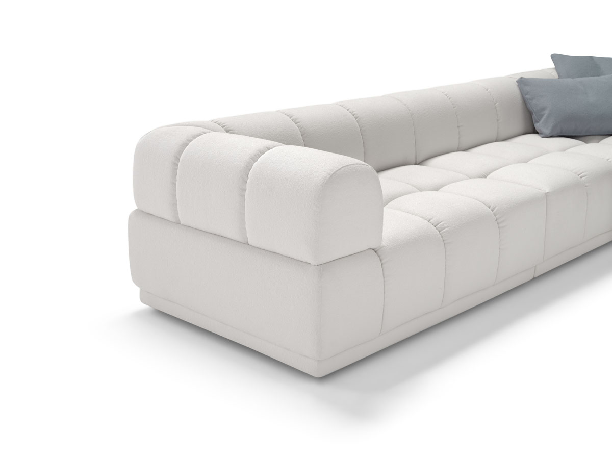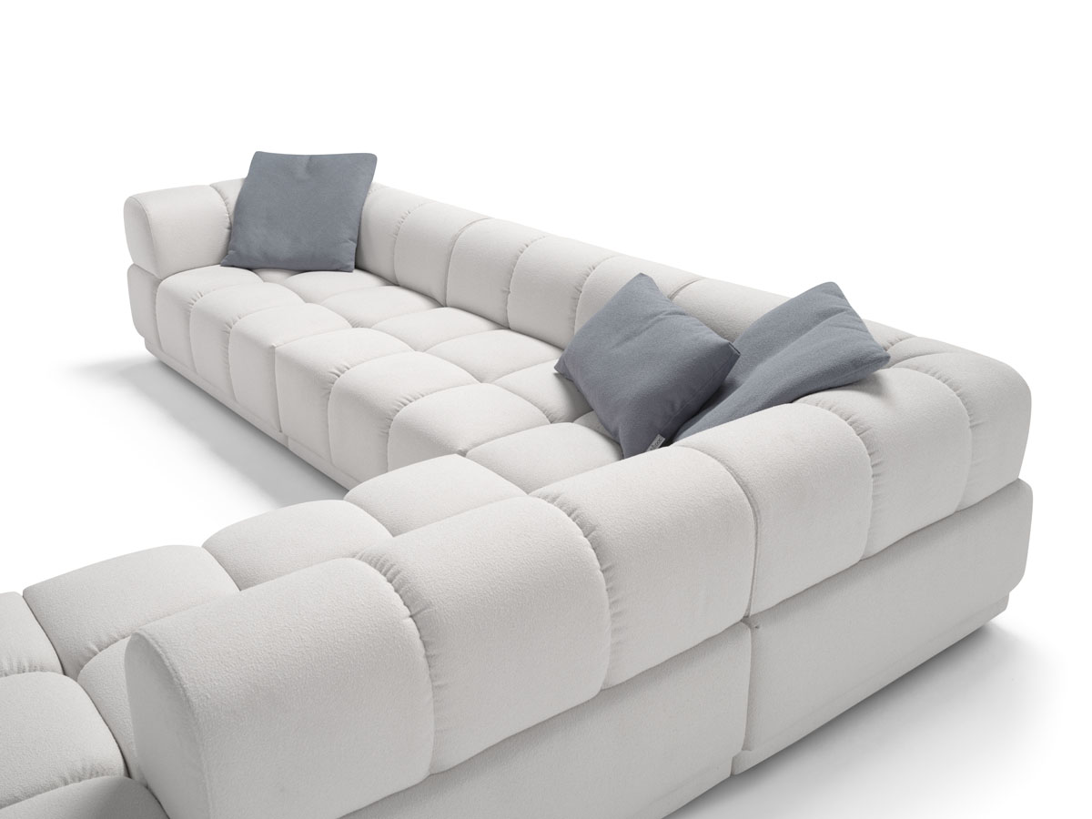 L’imbottitura a densità differenziate avvolge con delicatezza, mentre la struttura solida garantisce sostegno e durata. Gli elementi modulari, facilmente unibili, offrono versatilità e libertà compositiva per adattarsi ad ogni ambiente.